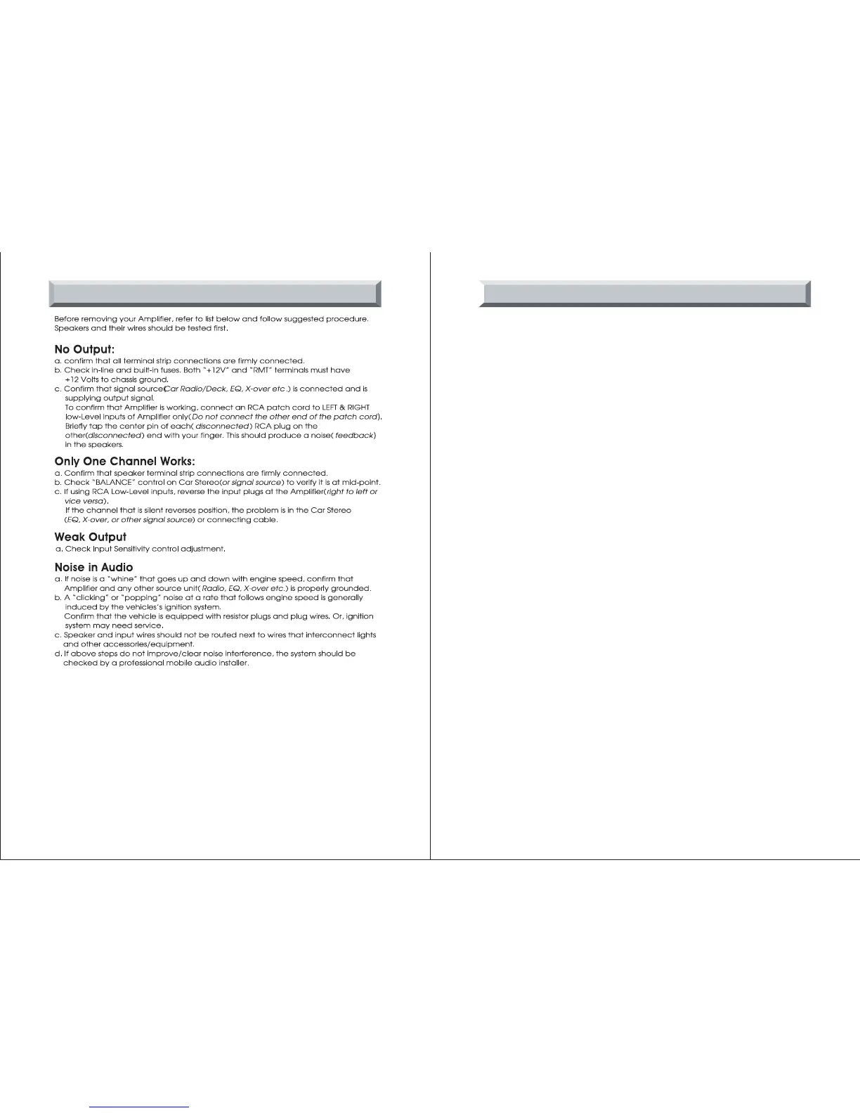 c. Confirme se a fonte de sinal (Rádio de carro/Deck, EQ, X-sobre etc) está ligado