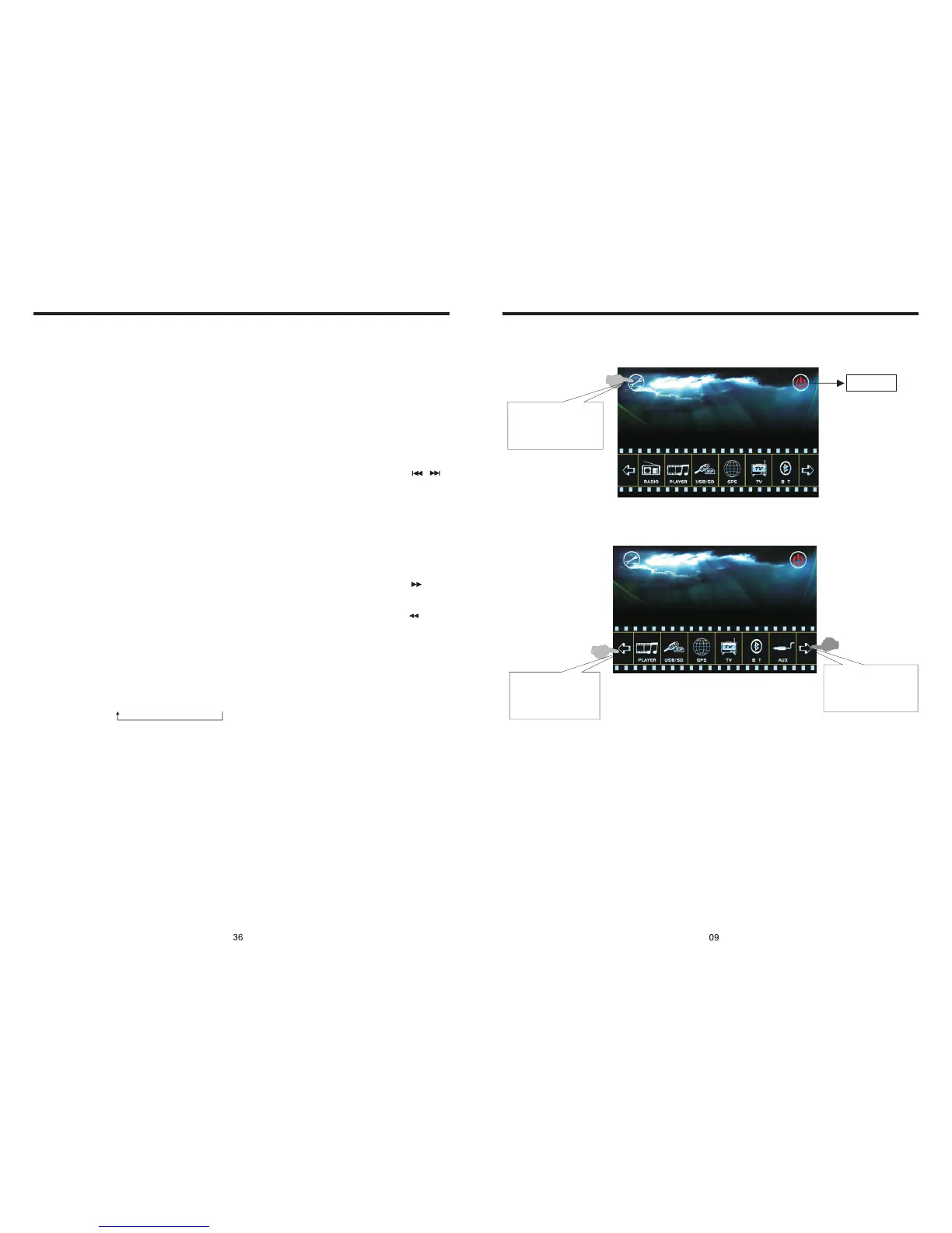 2) Press and hold SEEK - button on panel, SEEK - button on remote control, or touch