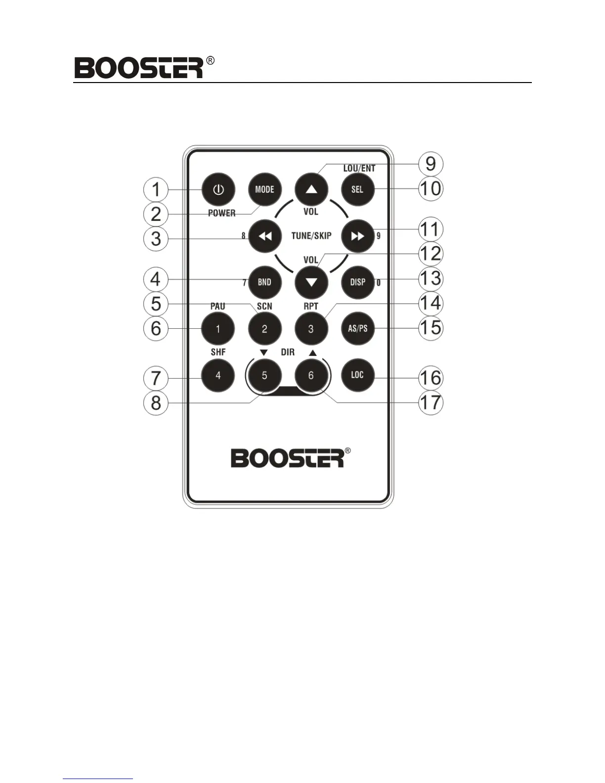 Booster BMP-2400USB - Remote Control Functions; Remote Handset Button Layout