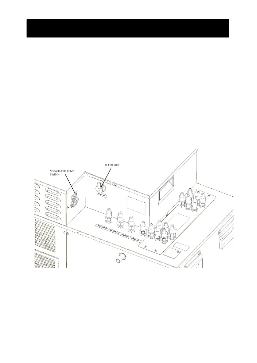 Switch on the soda recirc pump (green switch) ensuring that the water supply is on. The rest of the circuit