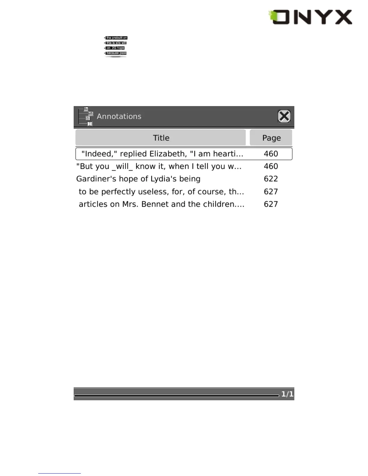 Display all of the annotations by list. The highlighted texts as well as the corresponding