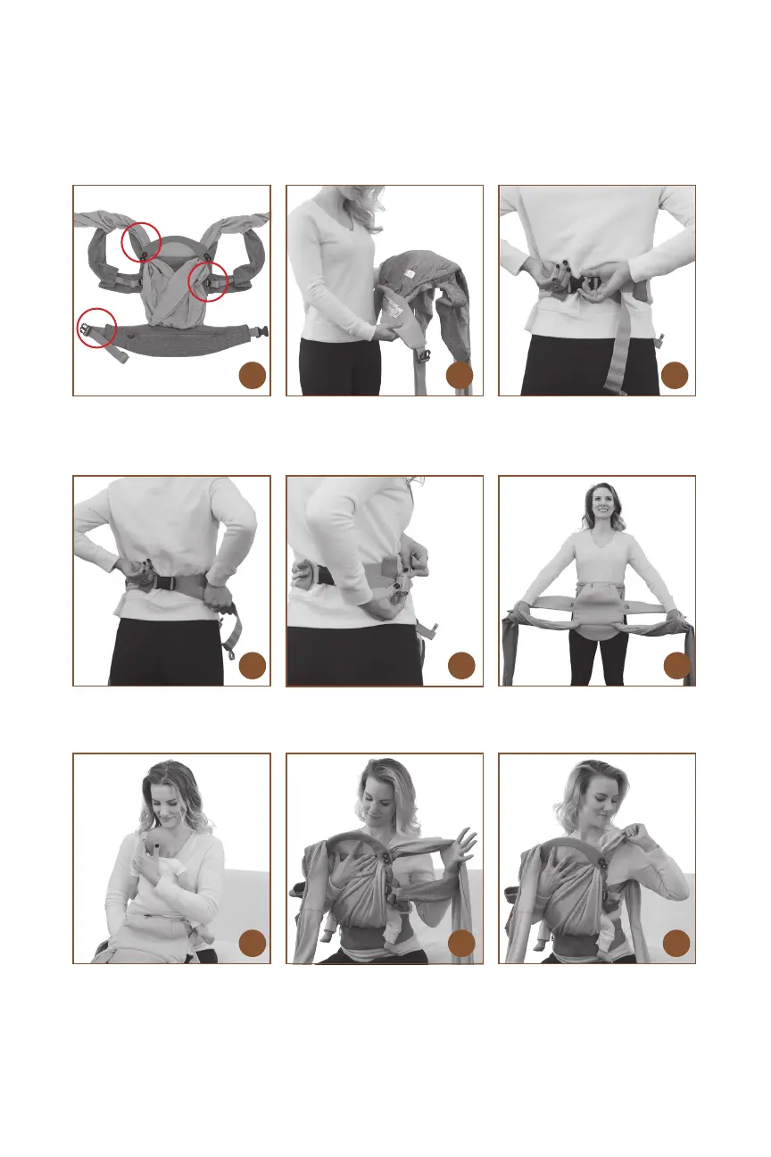 Póngase el portabebé con el bebé apuntando hacia dentro.
