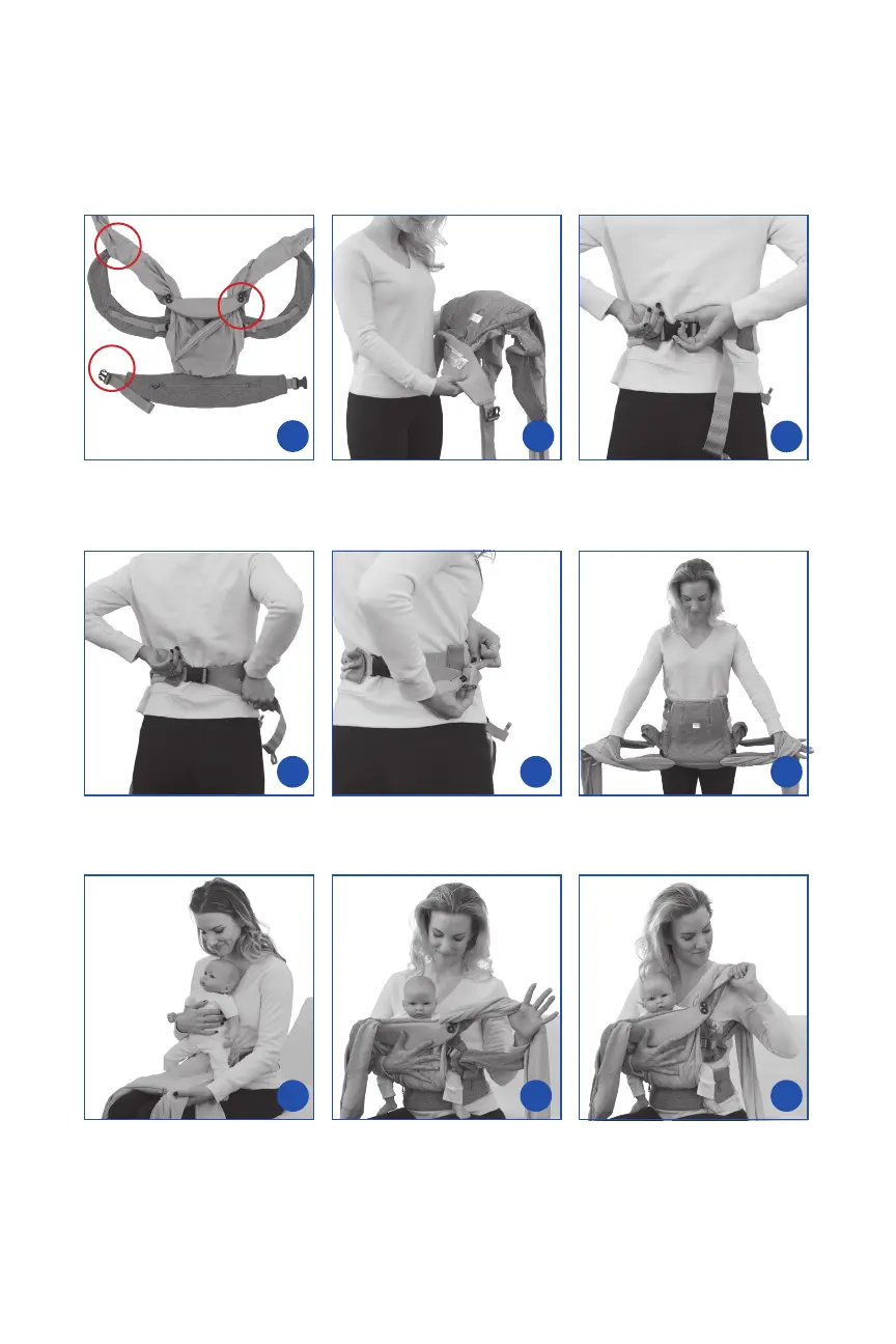 Póngase el portabebé con el bebé apuntando hacia el frente.
