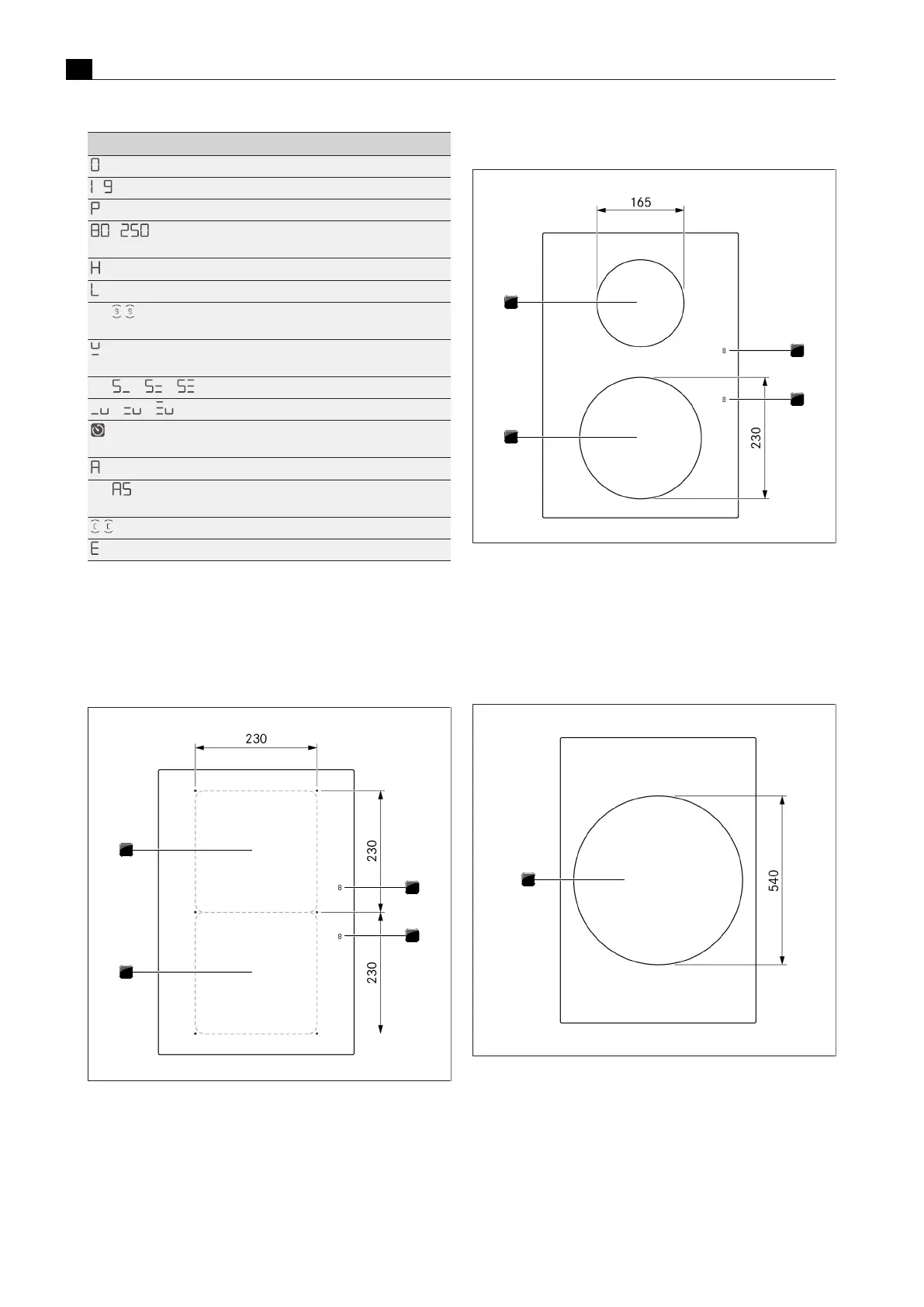 Layout of cooktop PKI3 and cooking zone dimensions