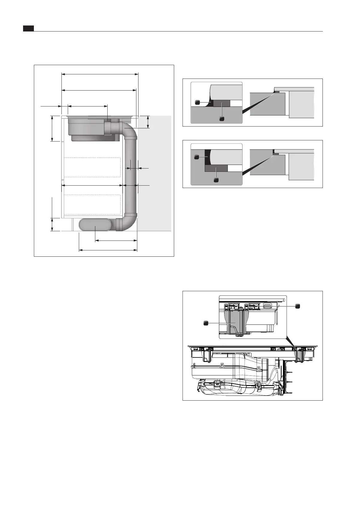 Fig. 6.15 Installation dimensions for exhaust air, worktop depth