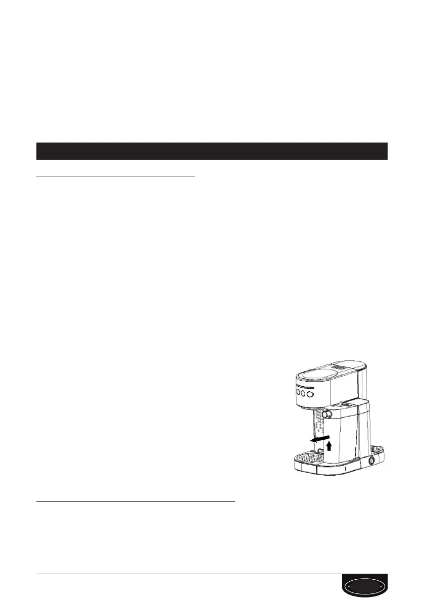 puis l’utilisateur doit vider le réservoir d’eau et le remplir avec 600 ml d’eau propre. Appuyez