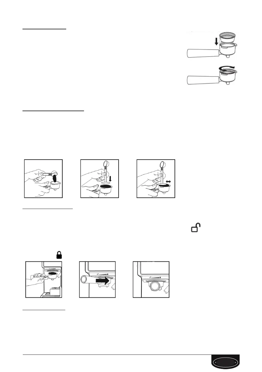1. Fill the lter with fresh, ne ground espresso coee (do not overll).