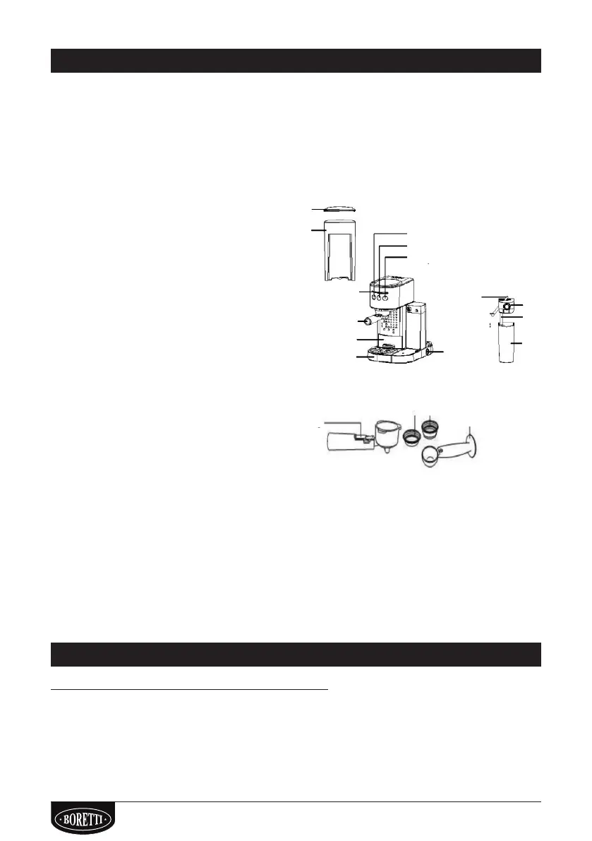 3. Vyjměte a umyjte zásobník vody, mléka, páku na kávu a všechny sítka na kávu. Mýt
