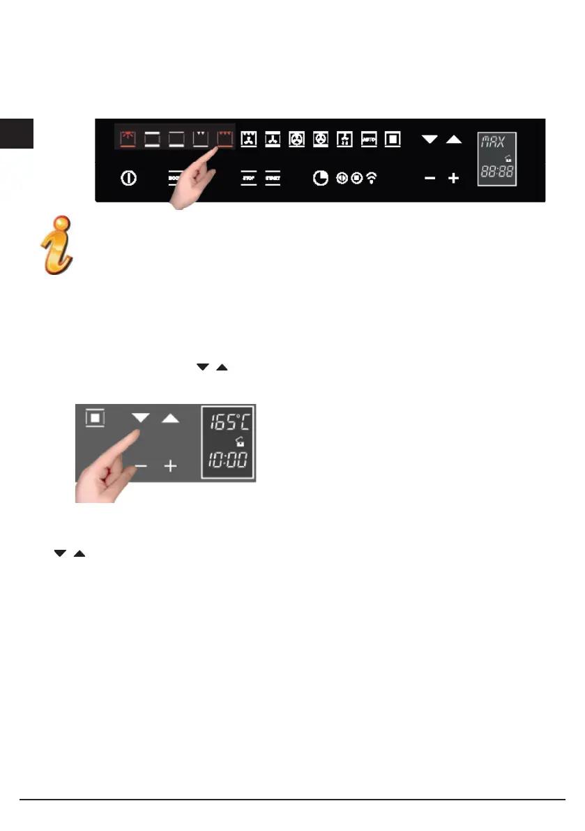 bereikt de actuele temperatuur aan in de oven, . Wil t u controleren welke temperatuur is ingesteld? Druk dan