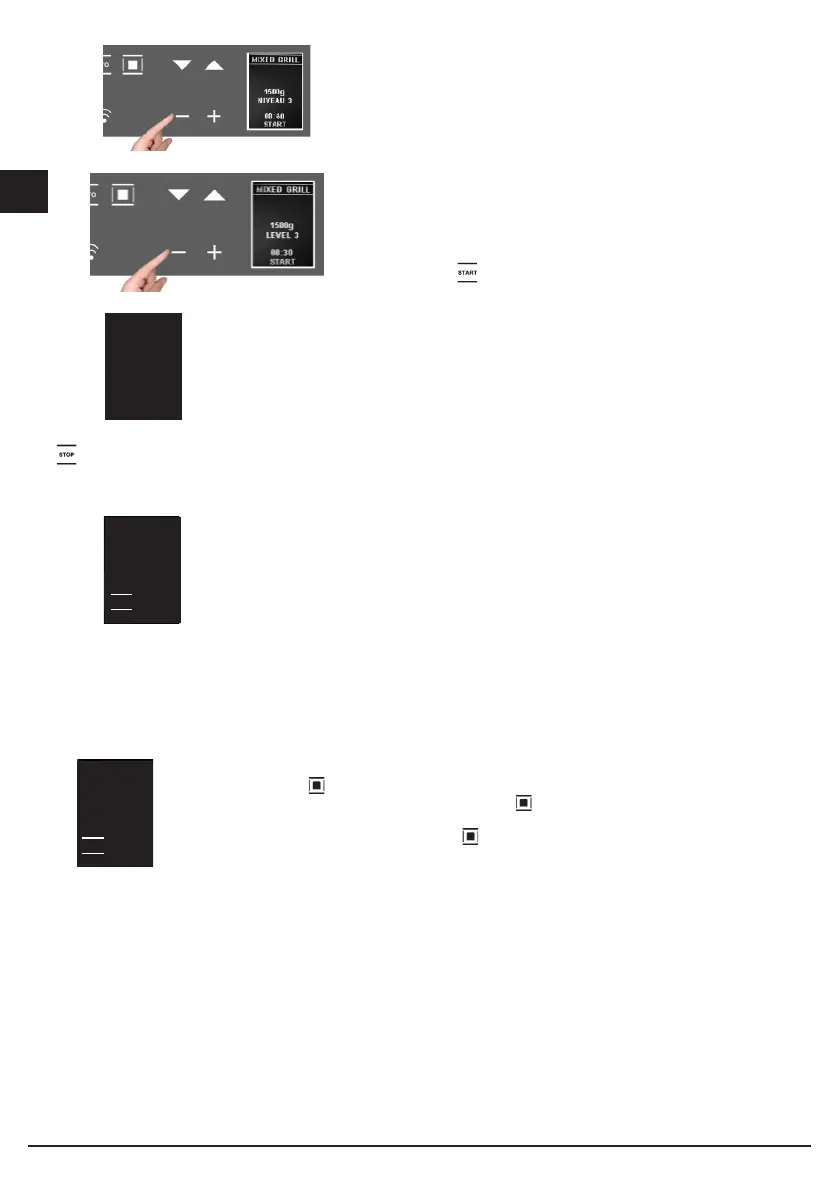 • verander dit met de + en – toets en bevestig met de toets., Nu wordt het gewicht