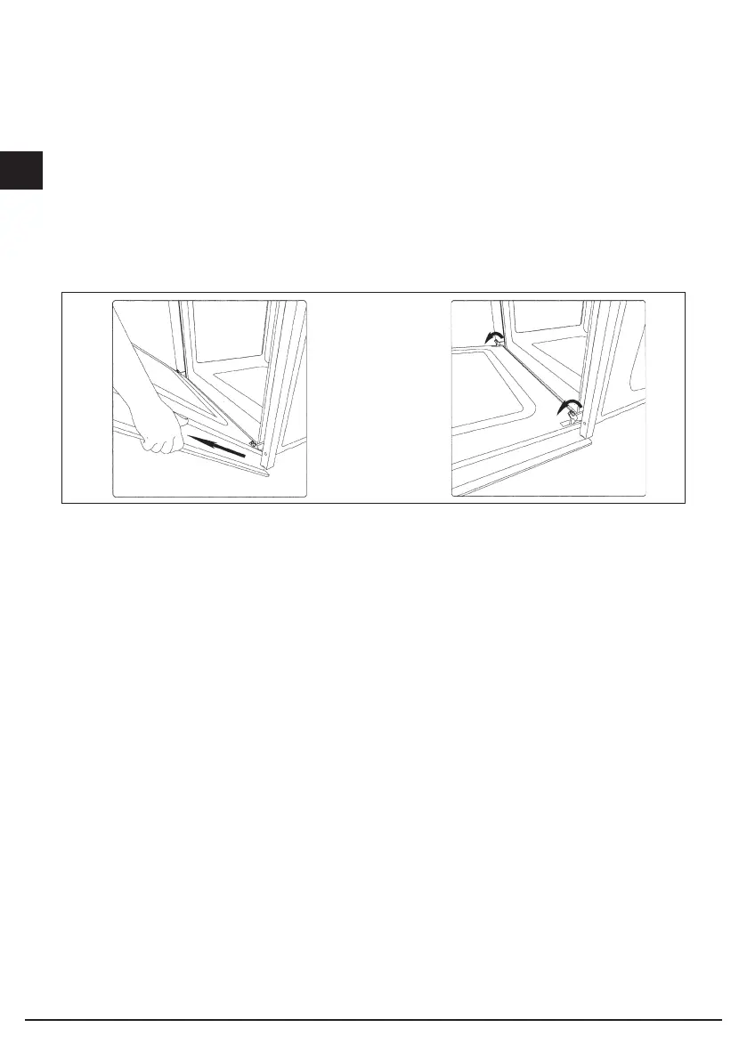 Voor het vervangen van de deur, hang de scharnieren in hun bevestigingen en verlaag de twee hendels.
