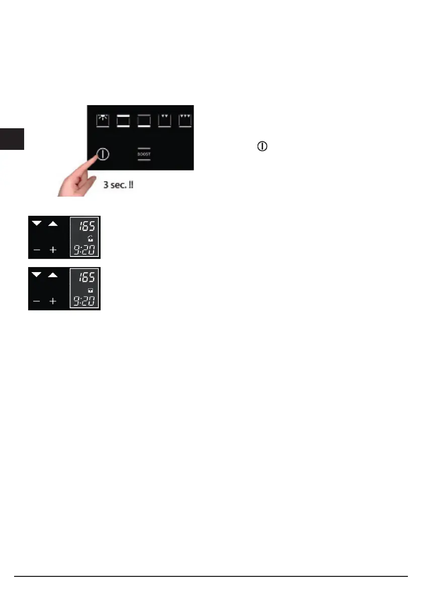 The padlock OPEN symbol means that the key function is not active.