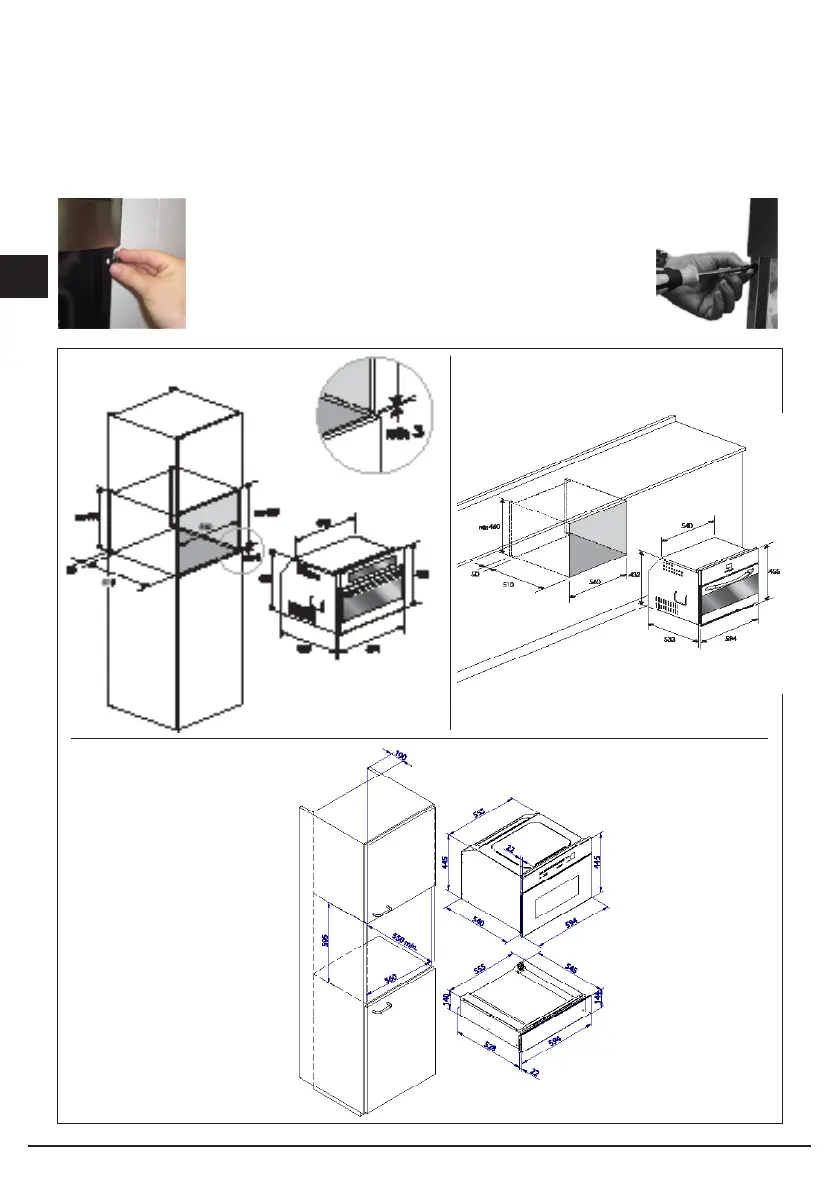 The oven must be centred with respect to the walls of the cabinet