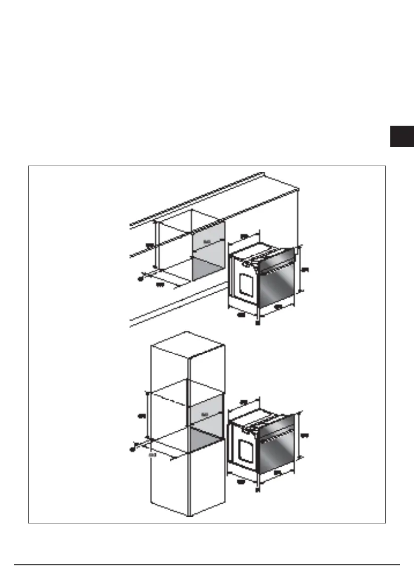 The oven can be installed under a work top or in a cooking column. Figure shows the installation