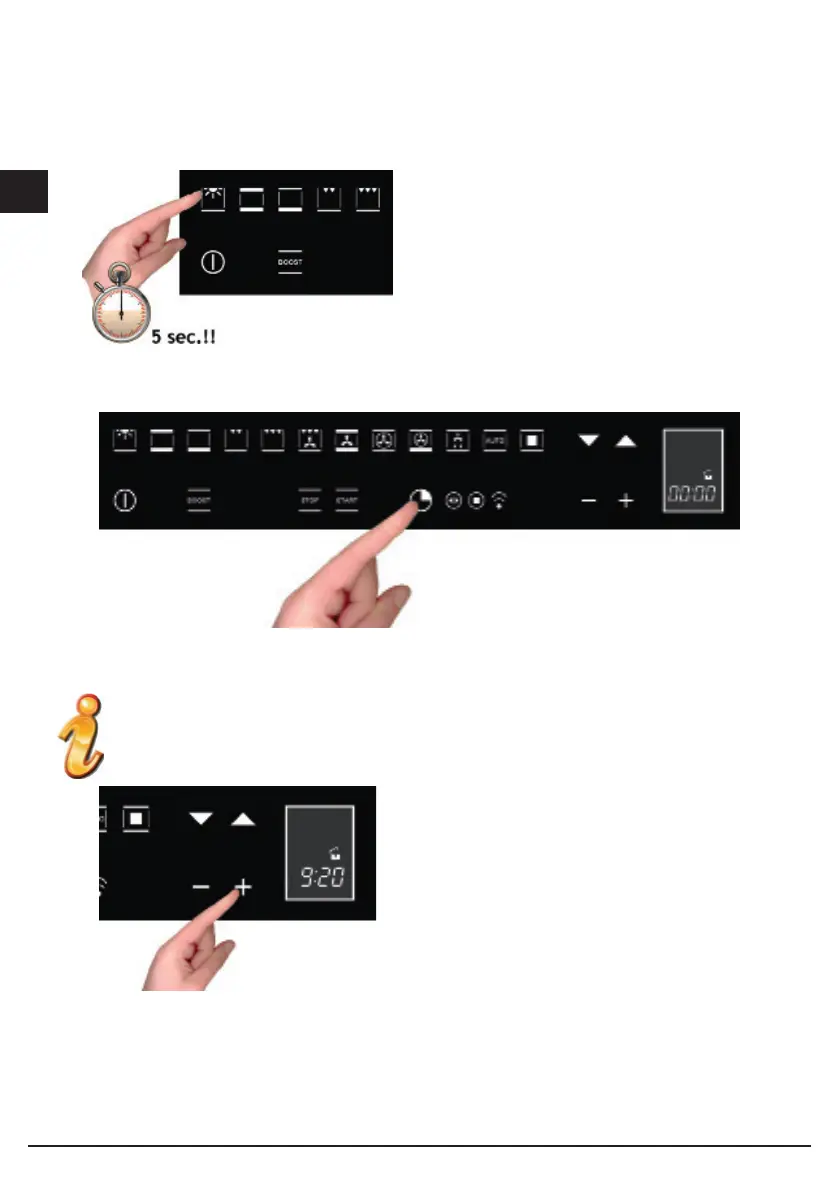 Om de tijd in te stellen, toetst u de “TIMER FUNCTIE” button minimaal 3 seconden in.