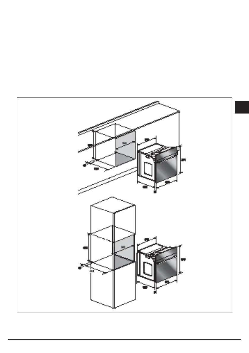 Il forno può essere installato sotto un piano di cottura oppure in colonna. Le dimensioni dell’incasso