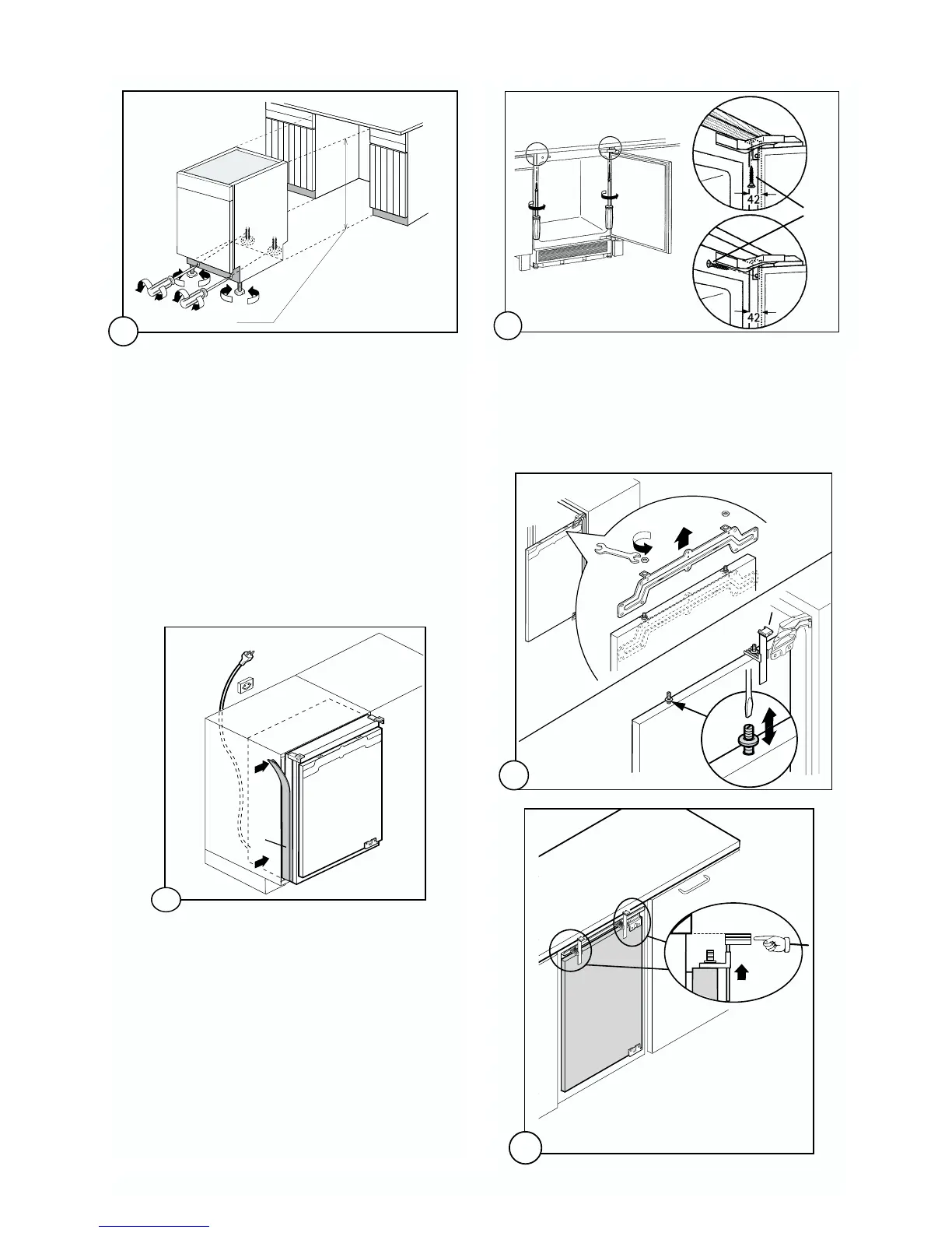 6. To mount the furniture door proceed as shown in