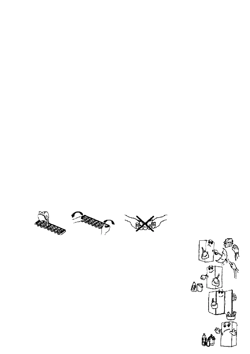 congélateur. Quand l'eau devient gel, vous pouvez tordre le plateau comme indiqué ci-dessous pour