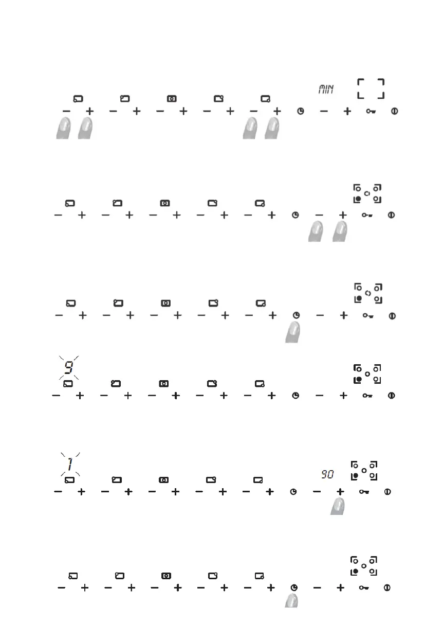 voert een test uit. (U kunt nu niets instellen) Zodra de test klaar is zal de kookplaat op de