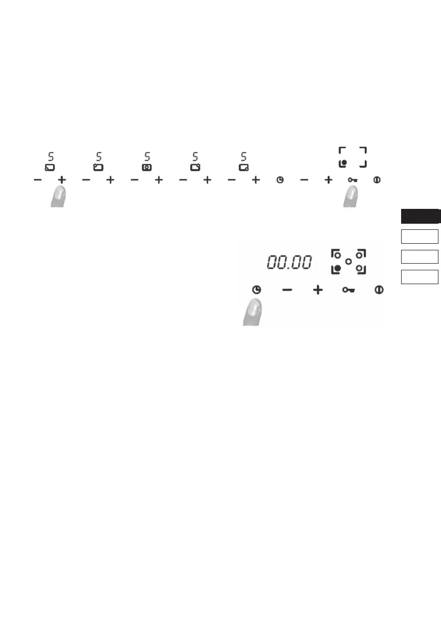 keld met de toets ON/OFF. Een geblokkeerde brander kan niet worden gedeblokkeerd terwijl de