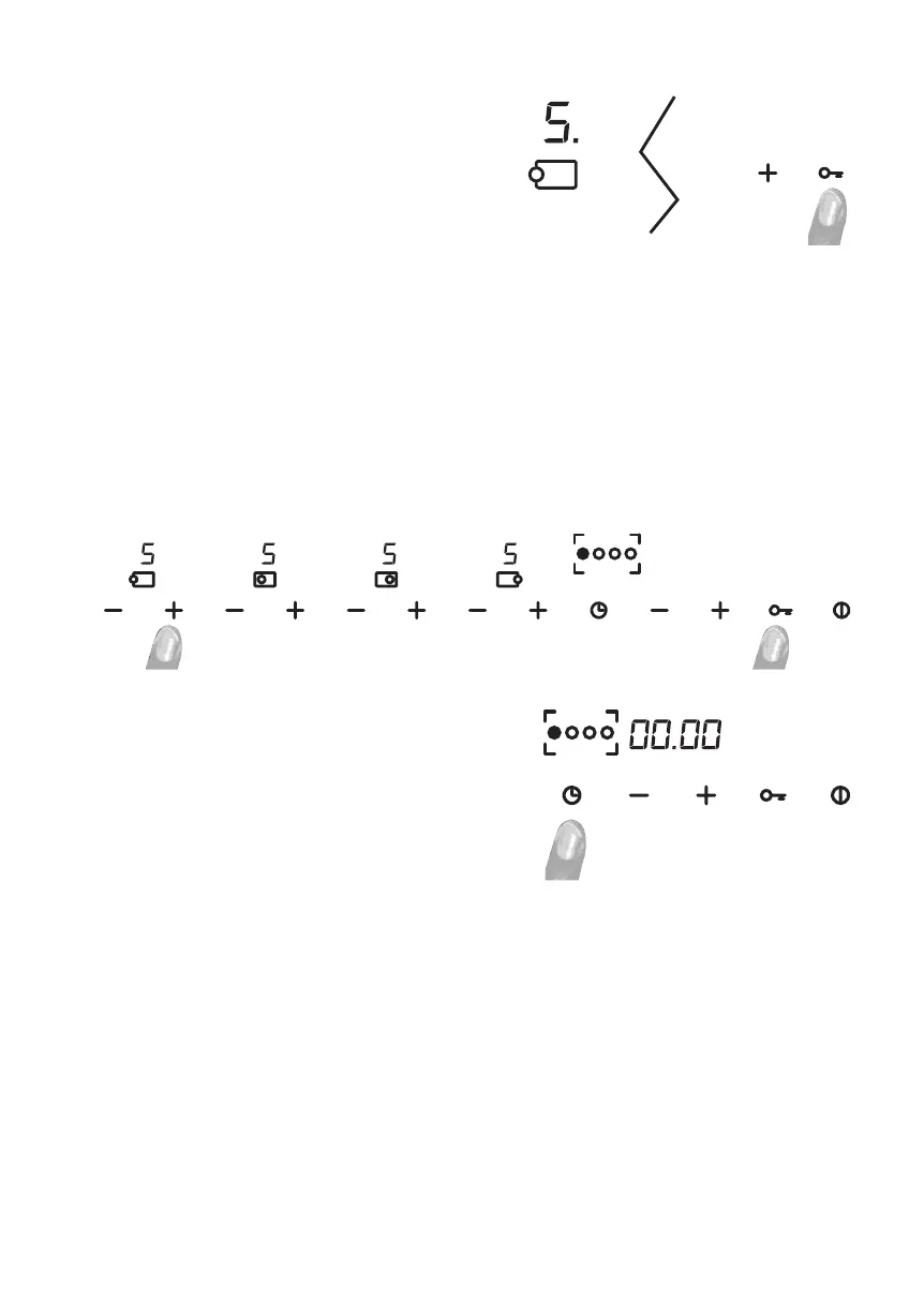 “+” van de linkerbrander te drukken. Het deblokkeren van het toetsenbord wordt duidelijk bij het