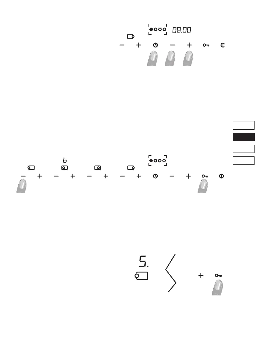 ON/OFF. Il n’est pas possible de débloquer les brûleurs quand le clavier est bloqué. Il faut donc
