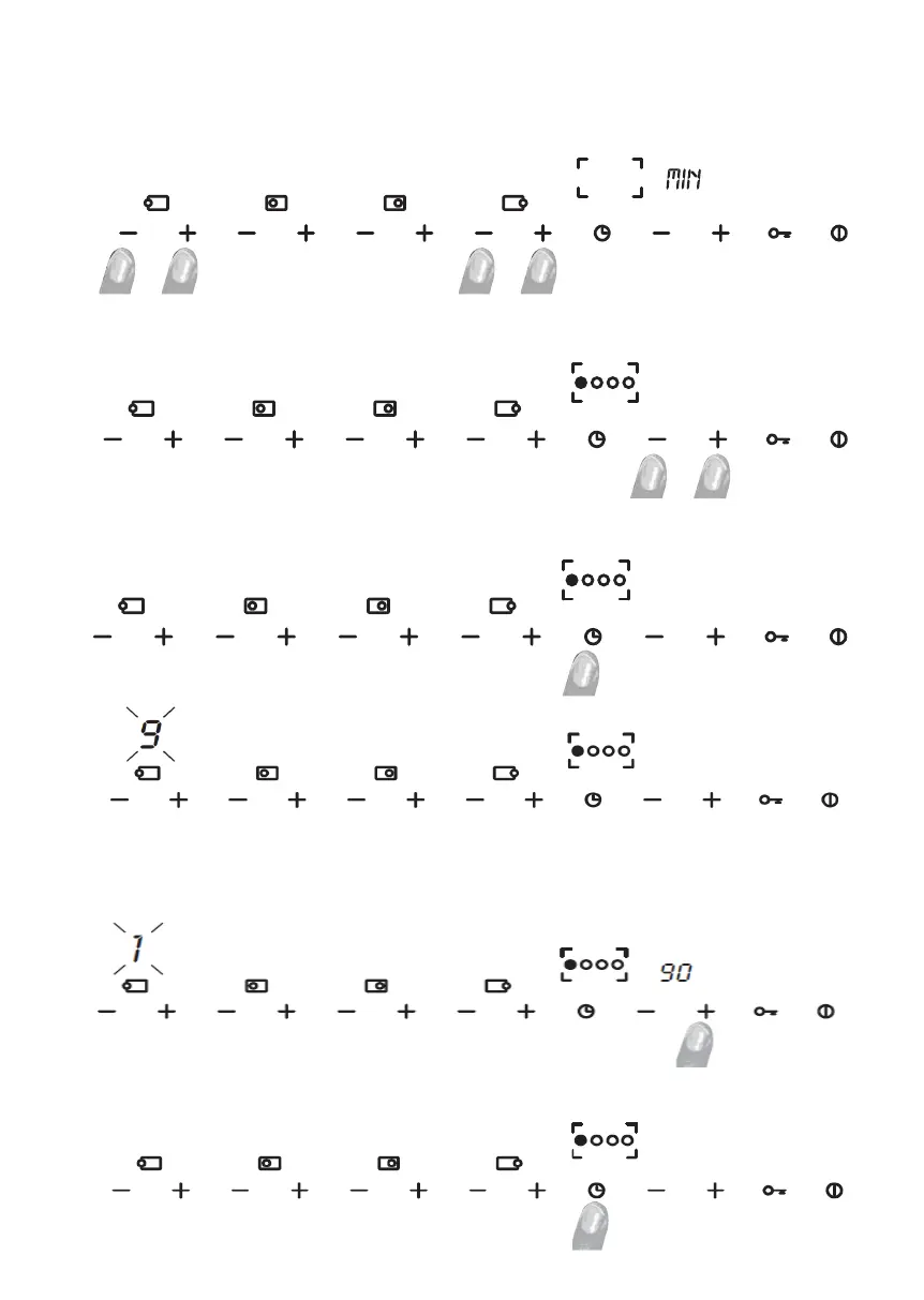 At this stage, select the burner to be adjusted using the “+” and “-” buttons. By pressing these
