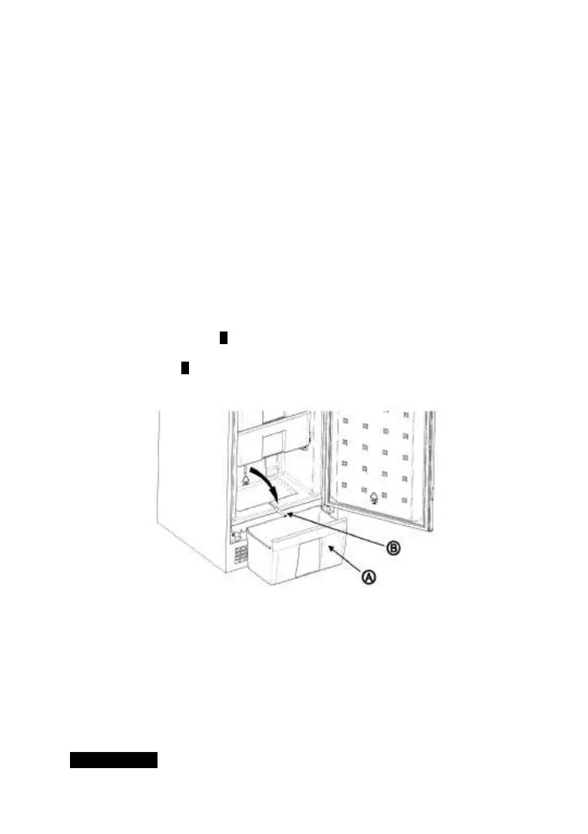 2. Sortez le tuyau B placé sur le fond du congélateur. Placez-le ensuite dans la rainure