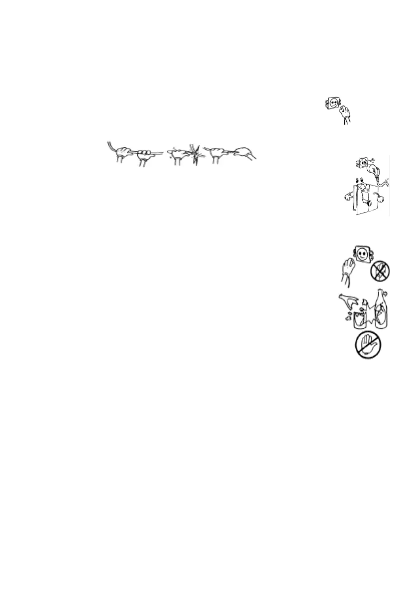 • Ziehen Sie den Netzstecker auf keinen Fall mit feuchten Händen ab.