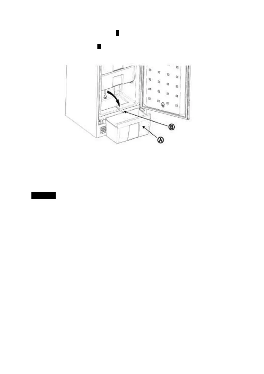 1. Pull out the bottom drawer A of the freezer compartment and put it on the floor