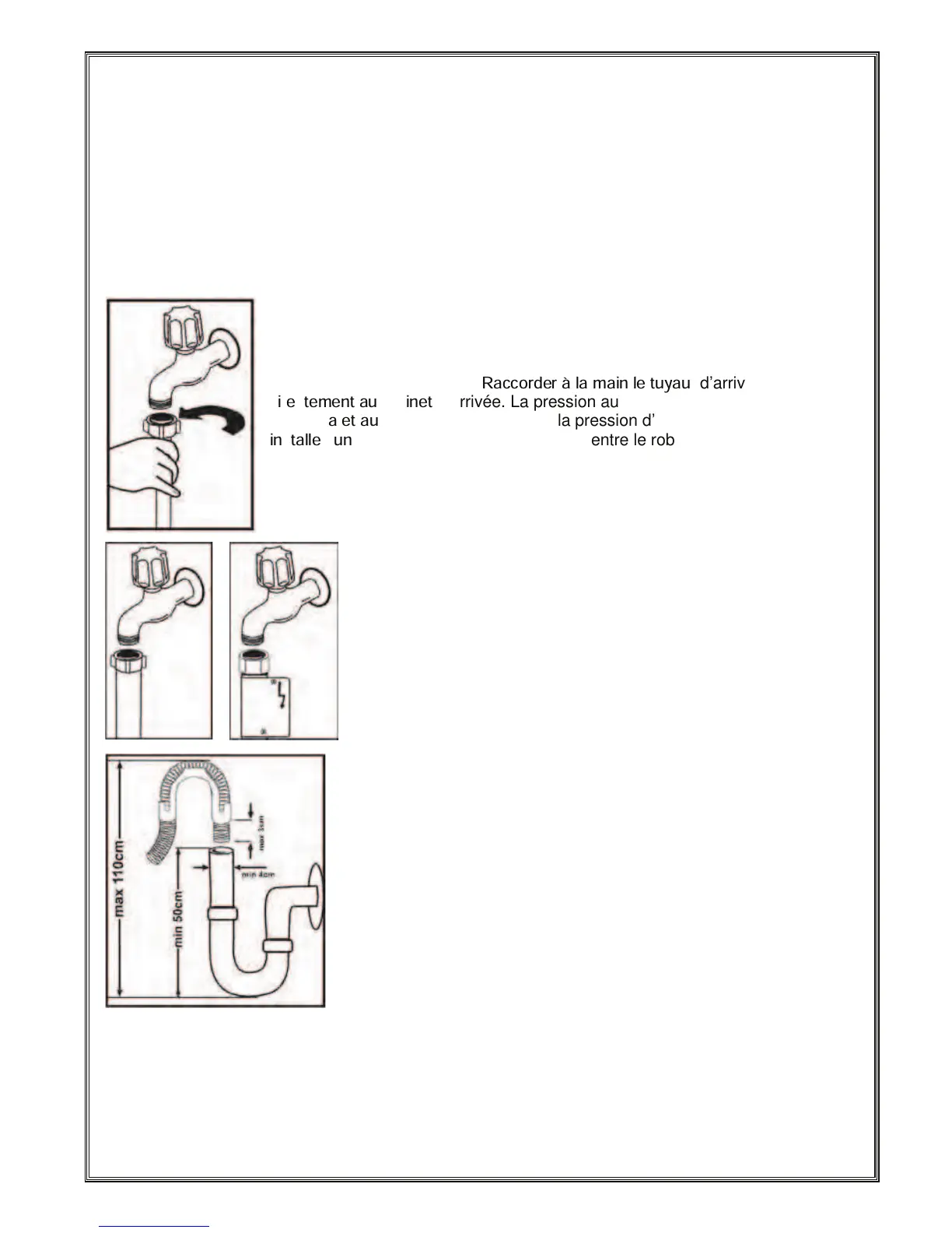 d’arrivée. La pression au robinet doit être au minimum de