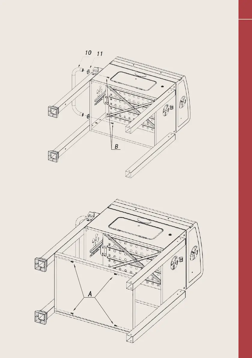 Use 4 times screw A to fasten the bottom tray to the legs.