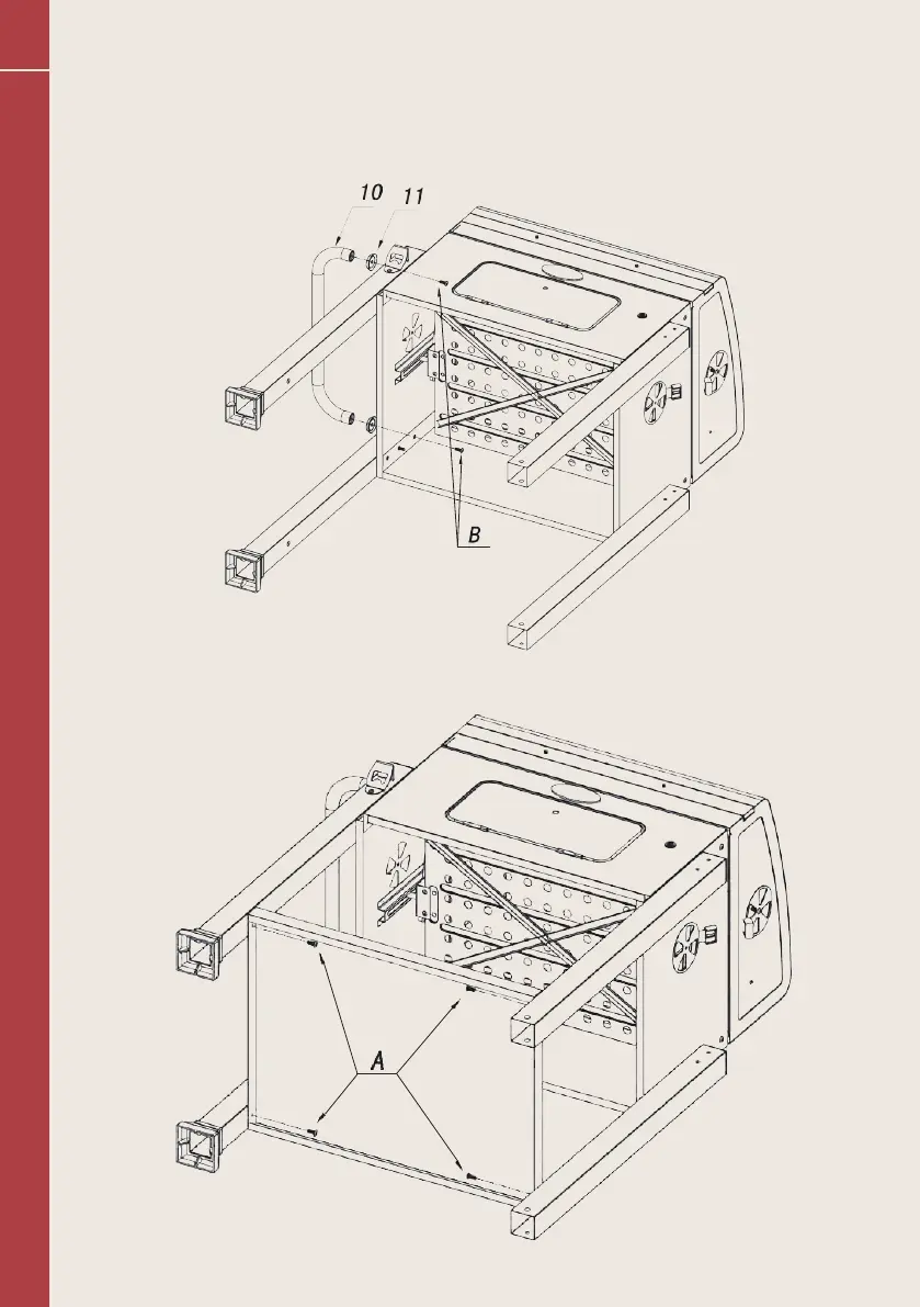 Utilisez 8x vis Apour fixer lla tôle de fond aux pieds.