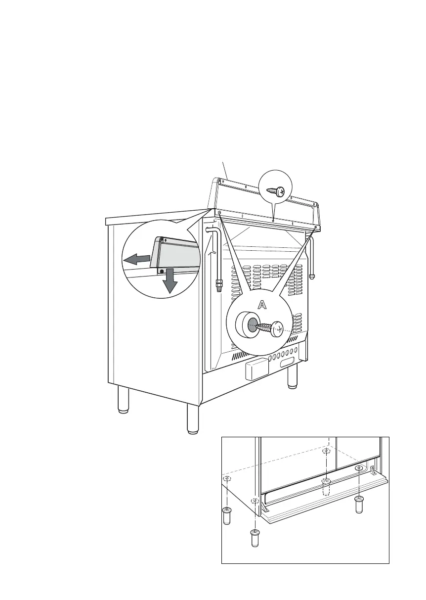 Vor dem Aufstellen des Herds zunächst die hintere Schutzabdeckung “C” montieren