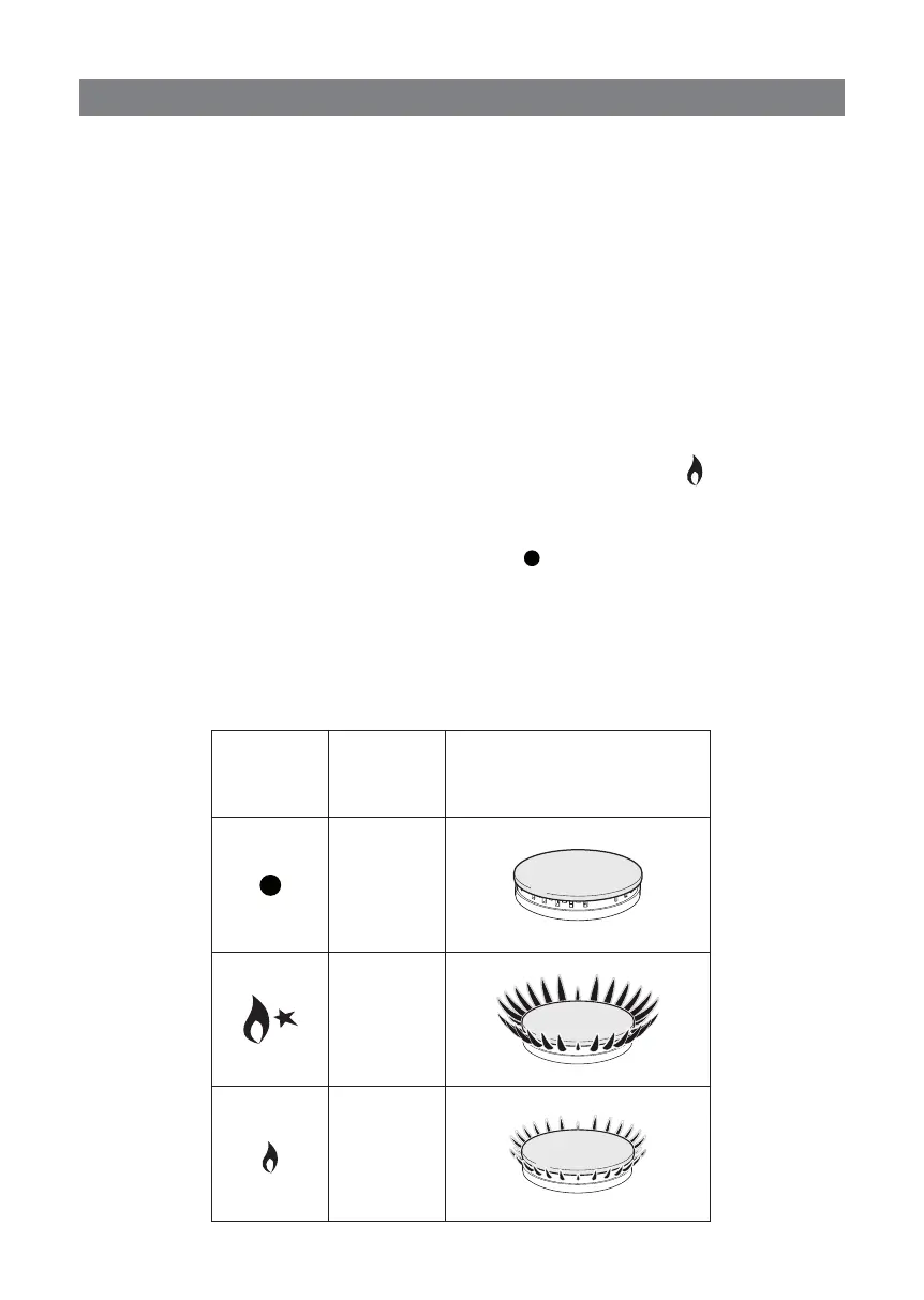 Le débit du gaz aux brûleurs est réglé en tournant les boutons (comme montré sur la g.