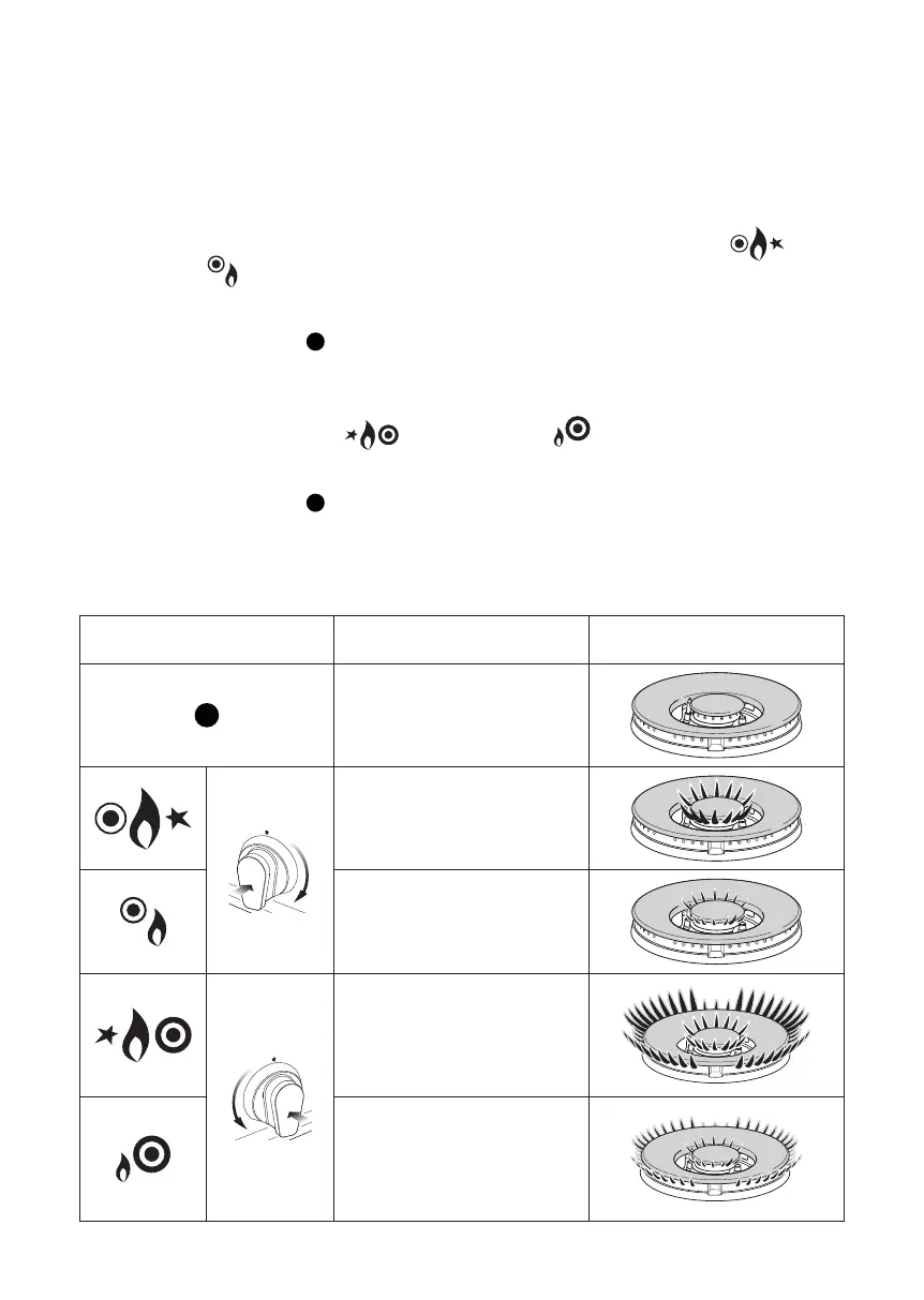 • draai de knop met de klok mee - als een kleine brander (alleen de binnenste kroon