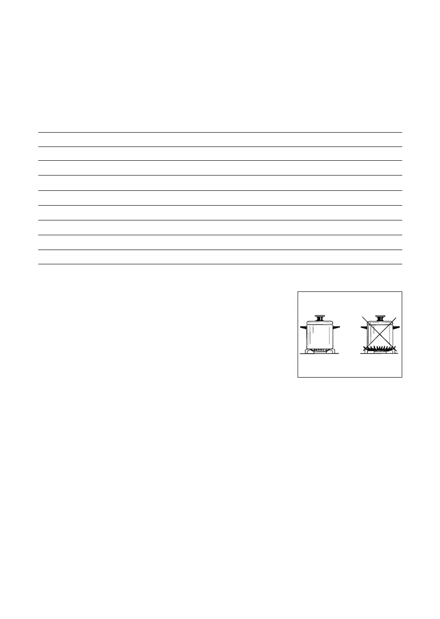 Ter inlichting: de branders en kookpannen moeten volgens de hiernavolgende aanduidingen