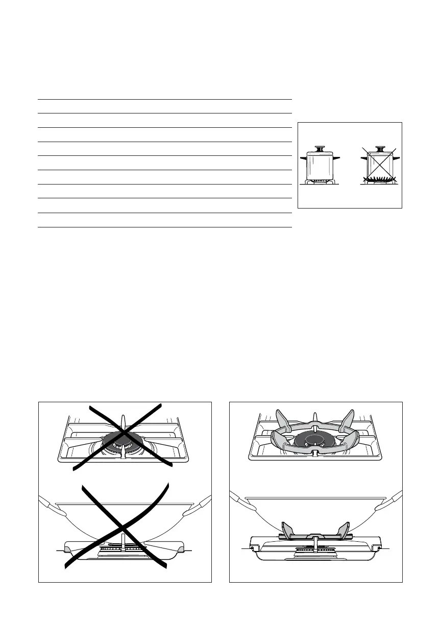 The special grille for wok pans (g. 3.6b) MUST BE PLACED ONLY over the pan-rest for