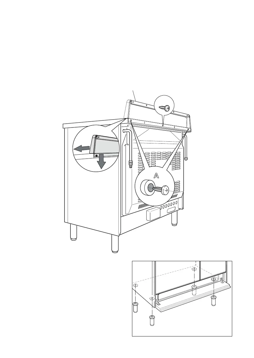 Assembleer het achterscherm “C” (afb. 8.2) alvorens het fornuis te installeren.