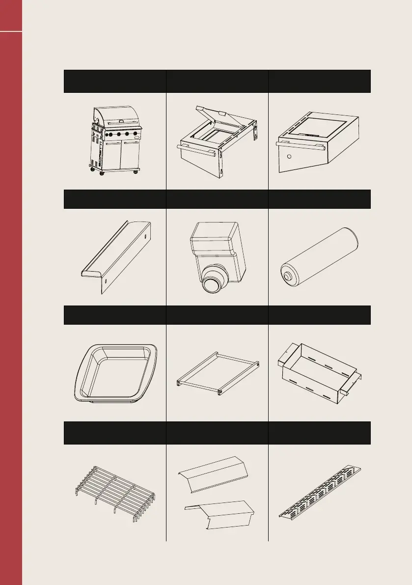 Grease collector tray 1x Frame for garbage sack 1x Charcoal tray 1x