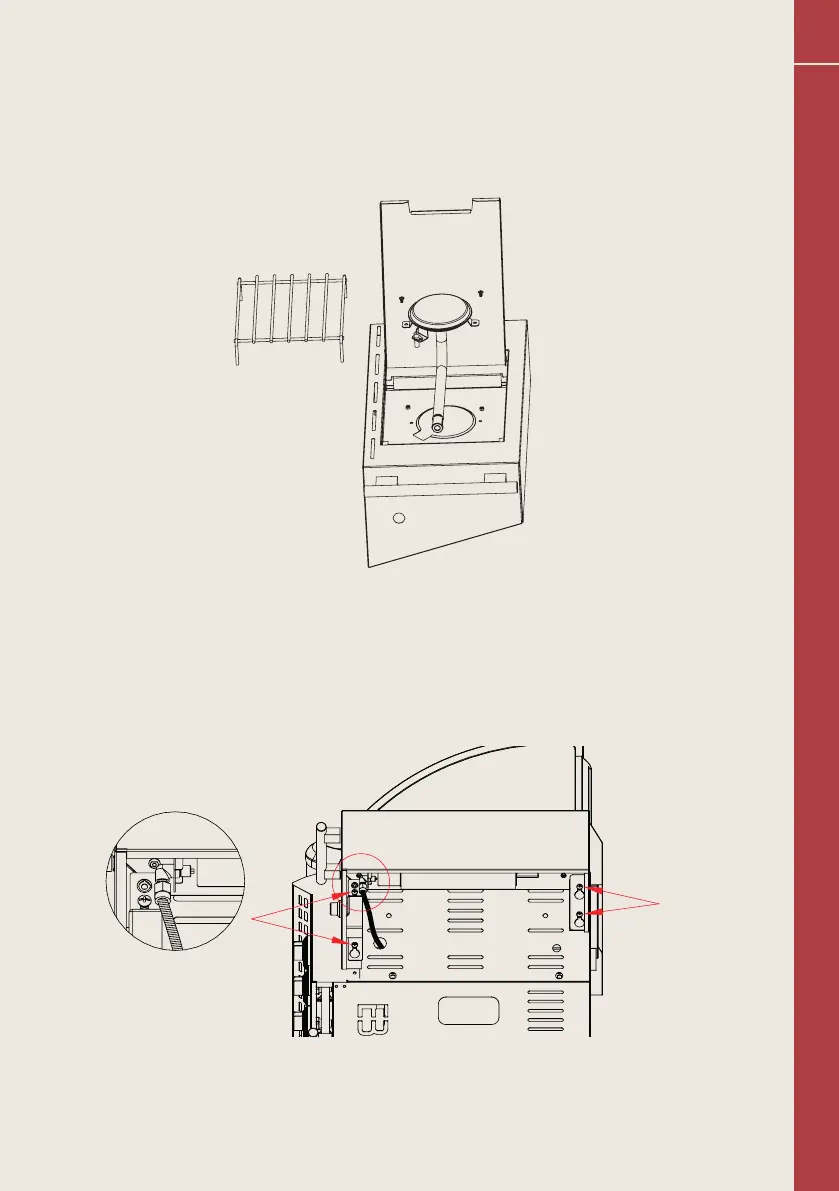 Remove the pan support and unscrew the 2 M4x5 screws to unfasten the side burner.