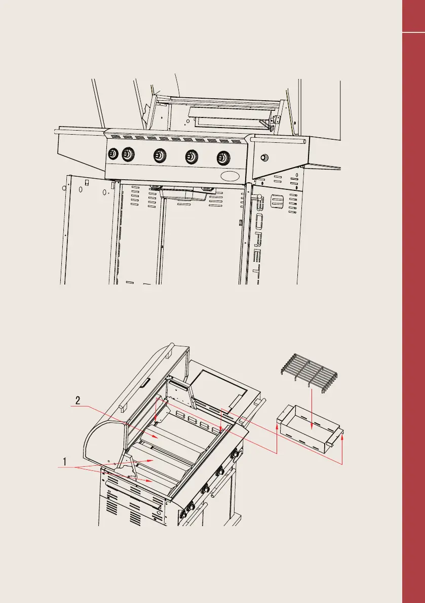 Vaihe 10 - a) Aseta liekinjakajien ylärivi rei’itettyihin kohtiin. Varmista, että