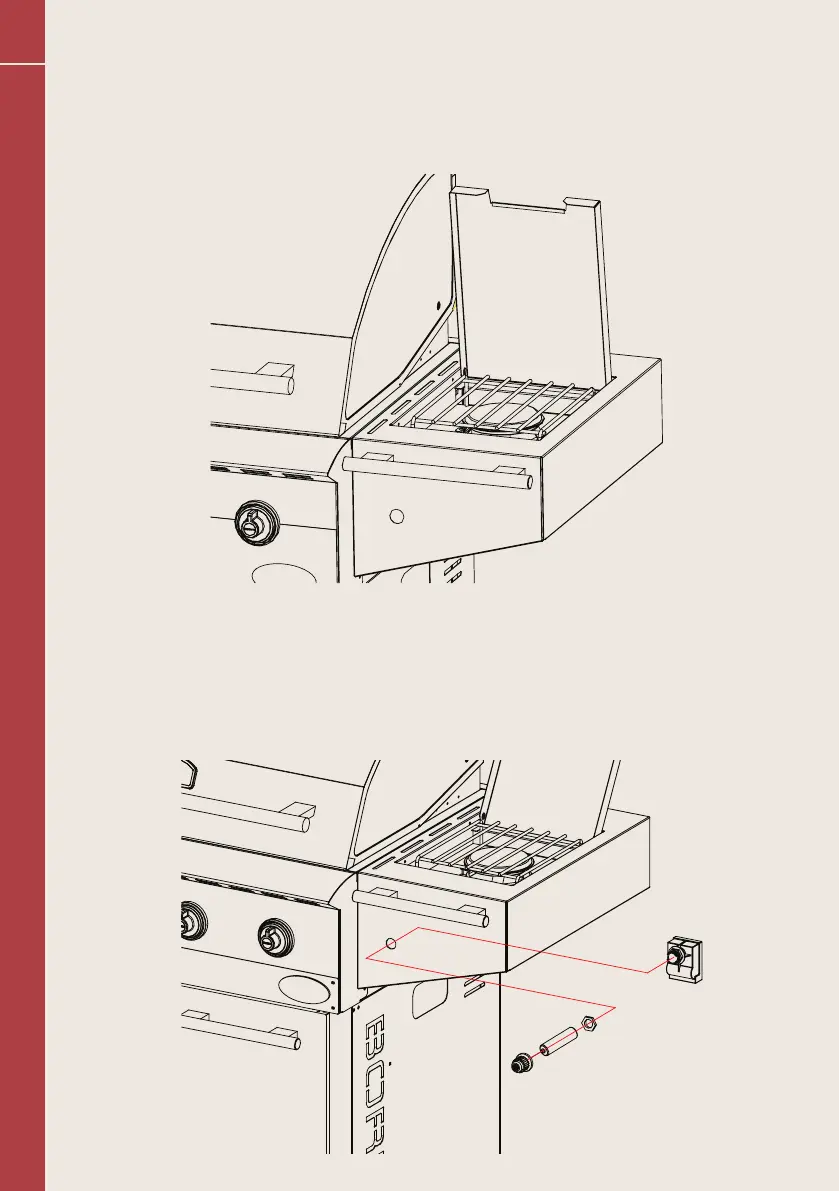 Bringen Sie den Seitenbrenner mit 2 M4x5-Schrauben an. Tauschen Sie die