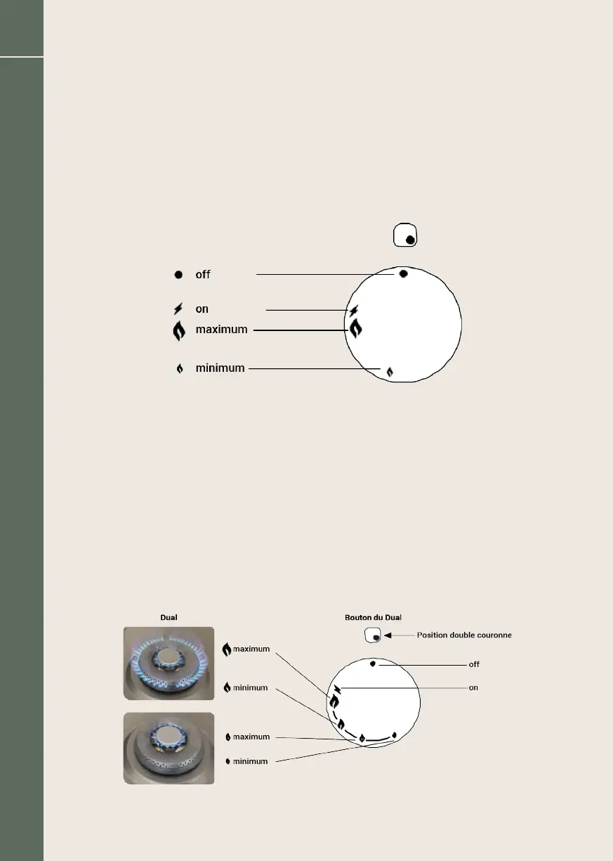 Identier le brûleur avec l'aide de l'index. Appuyer et tourner le bouton