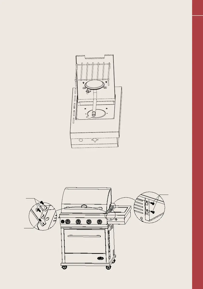 Step 2 - a) Loosen the 4x M6 and 1x M4 screws on the right side of the barbecue by