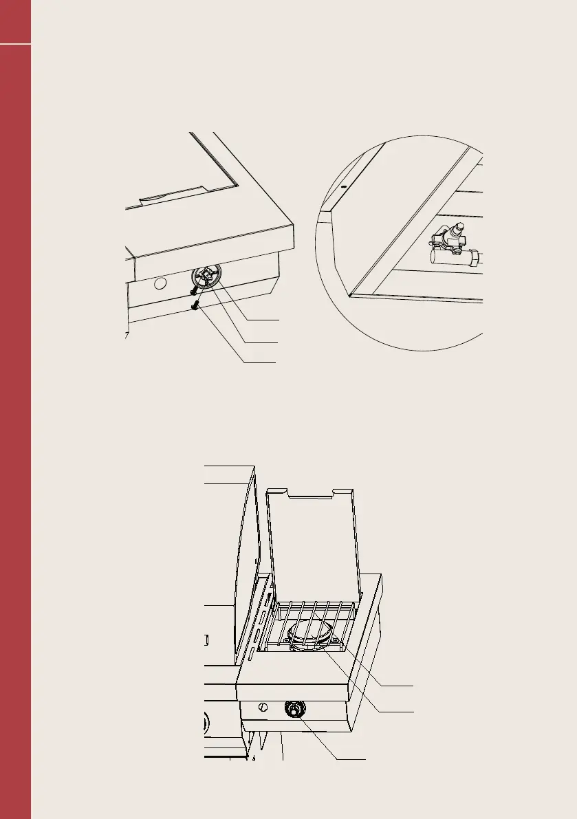 Trin 4 - a) Installer sidebrænderen med 2 x M4 skruerne. Sæt grydeholderen tilbage