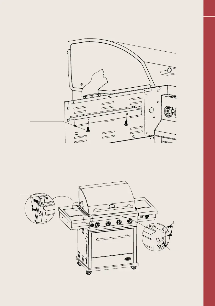 Trinn 8 - a) Løsne de fire M6-skruene på venstre side av grillen med omtrent 6 mm.