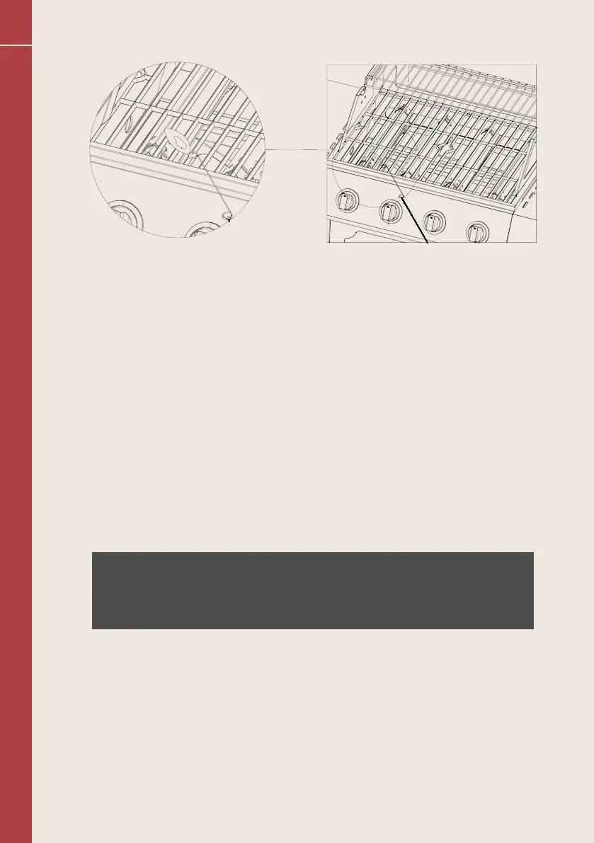 med å tenne opp grillen hvis brenneren ikke antennes etter 10 sekunder.