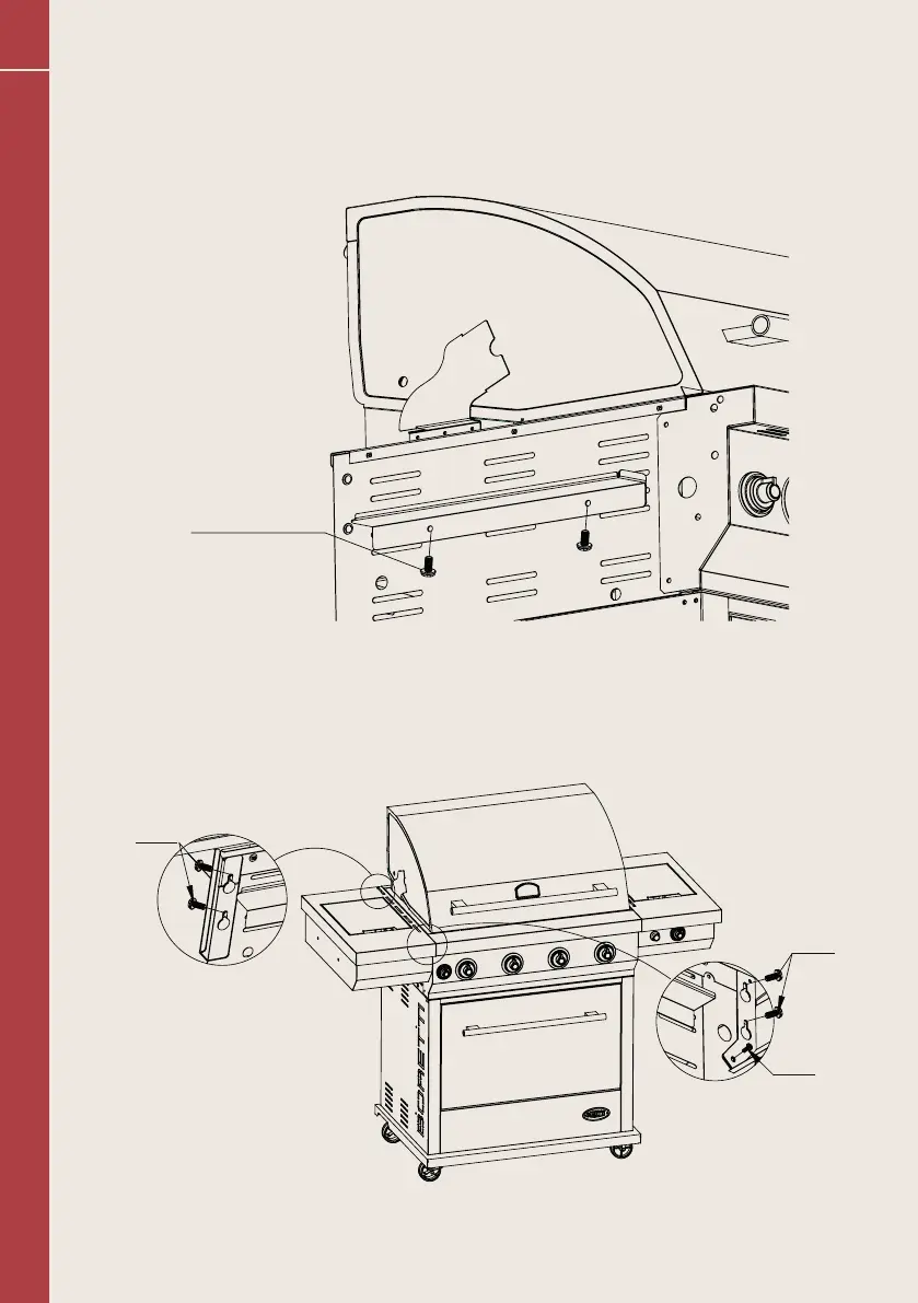 Stap 8 - a) Draai de 4x M6 en 1x M4 schroeven aan de linkerzijde van de barbecue