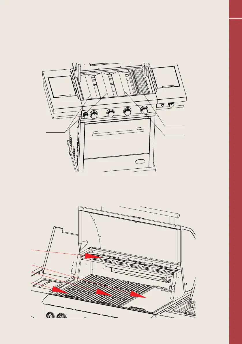 Plaats de vlamverdelers in de uitsparingen met de driehoek zijde naar boven.